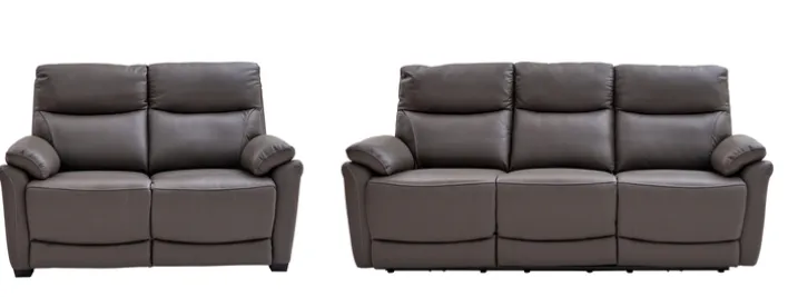 Der Lederlook vom Korpus der PETER Polstergarnitur schafft eine grau-braune Optik, die zeitgemäß, warm und gemütlich wirkt. Sowohl die Sitzfläche als auch der Rücken sind indes mit Leder bezogen. Für besonders gemütliche Stunden lassen sich diese Sitzgelegenheiten mühelos motorisiert verstellen, was für noch mehr Individualität im Wohnzimmer sorgt.