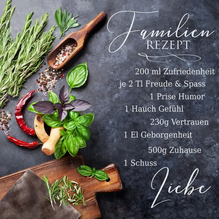 Gefertigt aus hochwertigem Glas, bietet das Wandbild nicht nur eine brillante Farbwiedergabe, sondern auch eine langlebige Qualität. Die Kombination aus natürlichen Elementen und der stilvollen Schriftart, die ein humorvolles Rezept für familiäre Harmonie darstellt, macht dieses Kunstwerk zu einem besonderen Blickfang. Die Marke Pro-Art Bilderpalette steht für kreative und inspirierende Designs, die jedem Raum eine persönliche Note verleihen.