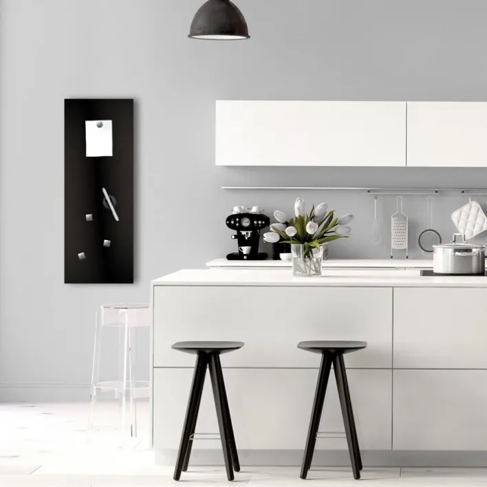 Diese rechteckige Magnettafel hält dank ihrer Größe viel Platz bereit und eignet sich damit gut als Austauschplattform für mehrere Personen. Ob in einer Familie oder in einer Wohngemeinschaft, ein Blick reicht, um Neuigkeiten schnell zu erfassen. Hängen Sie das Board in die Küche, in den Wohnraum oder in den Flur. Sobald sich die ersten Nachrichten darauf befinden, bekommt es eine persönliche Ausstrahlung. Farblich fügt sich die Tafel aus Metall überall unkompliziert ein.