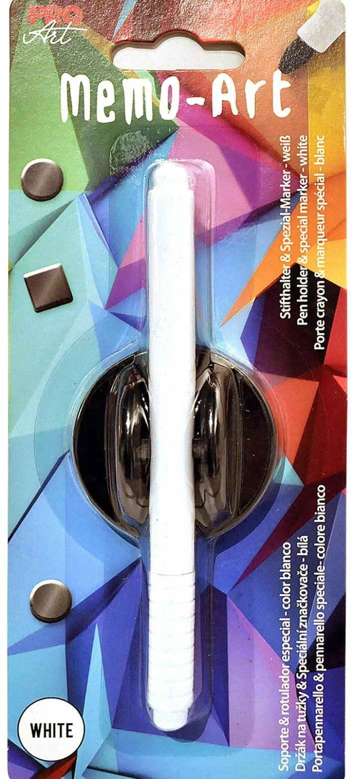Das aus Stifthalter & Stift bestehende Set von PRO ART ist ideal zur Beschriftung der PRO ART Magnettafel. Der Spezialmarker hat eine weiße Schriftfarbe und eignet sich auch für dunkle Memoboards und Glasflächen. Die Farbe lässt sich mit einem weichen Tuch einfach wieder entfernen.