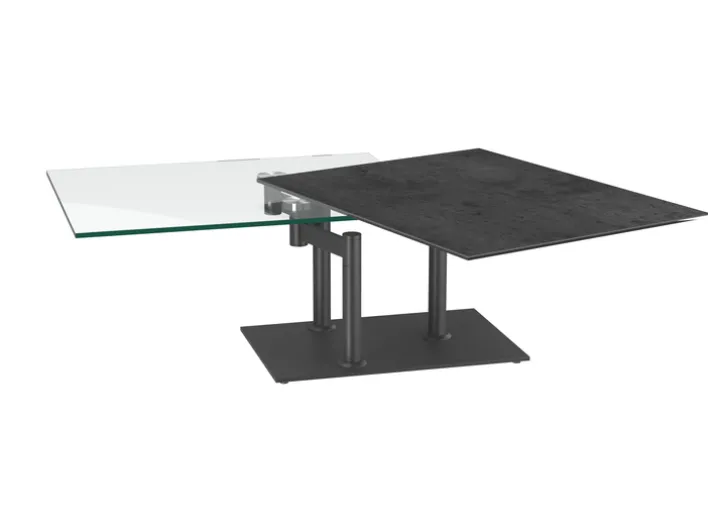 Durch seine versetzte Form mit zwei unterschiedlichen Längen lässt sich der Puro Couchtisch OPERA flexibel in die Nähe des Sofas positionieren und passt in kleinere ebenso wie größere Wohnzimmer. Da die Tischplatten zudem verstellbar sind, kann der Couchtisch auch schnell entsprechend des Anlasses und der Anzahl der Gäste neu hergerichtet werden.