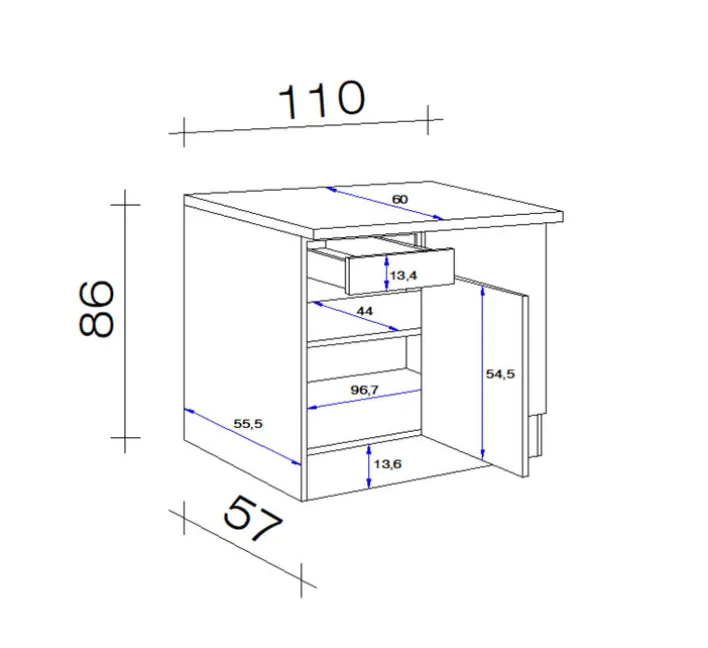 Griffe inklusive: jaAnzahl Drehtüren inklusive: 1Anzahl Schubkästen inklusive: 1Anzahl Einlegeböden inklusive: 1