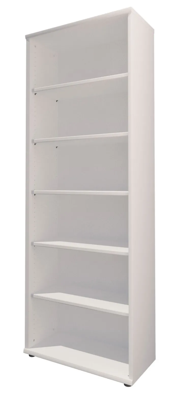 Das Büroregal aus der Serie POINT bietet mit seinen sechs offenen Fächern und fünf Einlegeböden vielseitigen Stauraum für Unterlagen, Bücher und weitere Büroutensilien. Die Maße betragen 219,7 cm in der Höhe, 80 cm in der Breite und 37,2 cm in der Tiefe. Das Regal hat ein Gewicht von 72 kg und ist speziell für den Innenbereich konzipiert. Die Oberfläche präsentiert sich in einem modernen, arktisch weißen Farbton. Die Holznachbildung sorgt für eine glatte, gleichmäßige Struktur ohne sichtbare Maserung oder Textur. Die klare Linienführung und das schnörkellose Design entsprechen einem modernen Stil und fügen sich harmonisch in verschiedene Arbeitsumgebungen ein. Das Regal eignet sich besonders als funktionale Ablage und zur strukturierten Organisation im Büro.