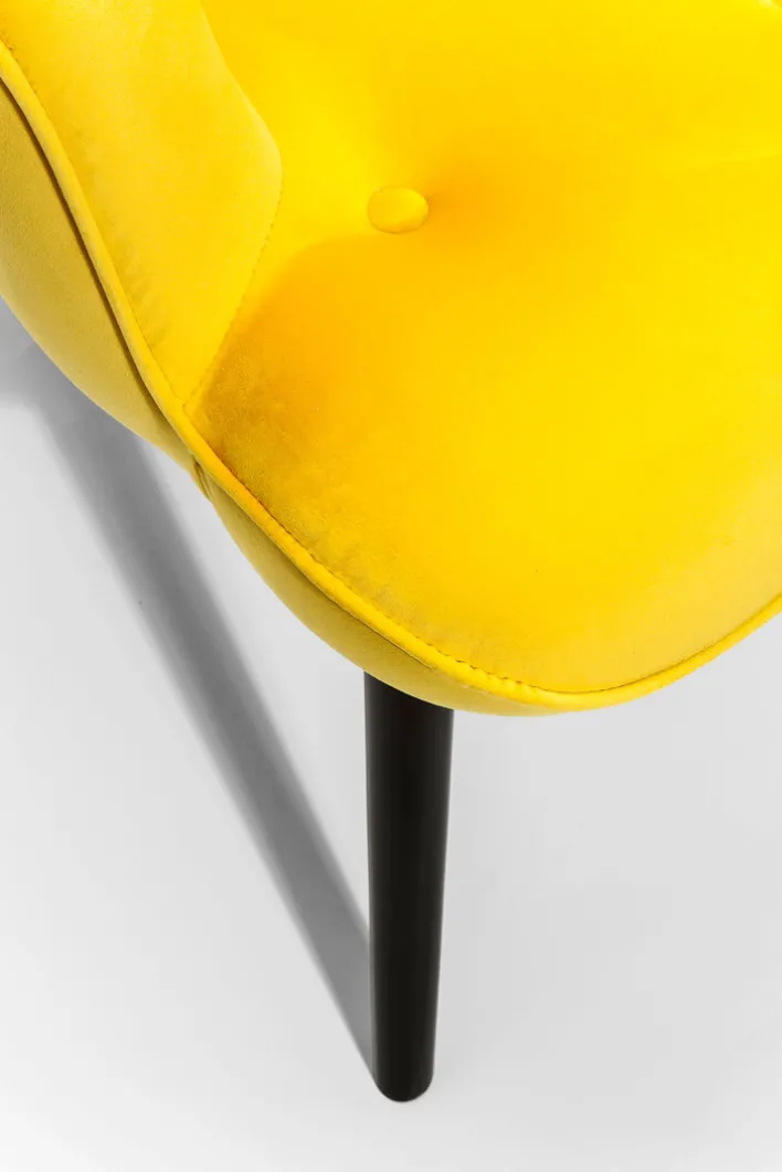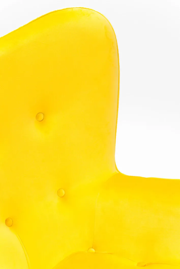 Der Relaxsessel VICKY VELVET in der Trendfarbe Gelb ist ein farbenfroher Eyecatcher für Wohn- und Gästezimmer und sorgt zudem mit einem angenehmen Sitzkomfort für Wohlgefühl.