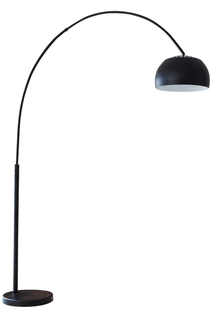 Die Retrofit Bogenlampe in Schwarz besitzt einen robusten Fuß aus schwarzem Marmor und strahlt Modernität aus. Gleichzeitig verleiht sie dem Wohnzimmer eine angenehme, blendfreie Beleuchtung und sieht auf in der Leseecke edel aus.