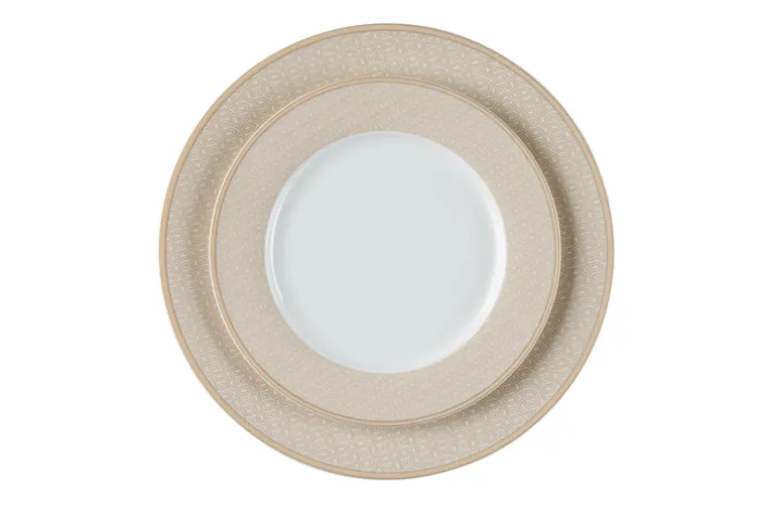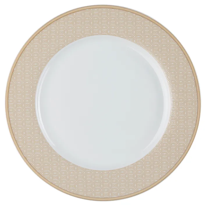 Mit seinem sanften Beigeton und dem Durchmesser von 21 Zentimetern ist der Dessertteller GEO ideal für den entspannten Genuss. Das geometrische, leicht erhabene Muster auf dem Porzellan sorgt für ein edles Gefühl beim Essen.