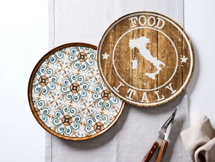 Mit dem Pizzateller ITALIEN lässt es sich stilvoll speisen. Der Teller in den Farben Braun, Weiß sowie