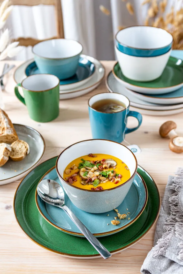 VISBY von Ritzenhoff & Breker ist ein Speiseteller, der mit seiner schlichten und natürlichen Ästhetik ländliches Flair mit nordischem Design verbindet. Er steht für das typisch skandinavische Lebensgefühl und beschreibt das, was in Dänemark gerne als „Hygge“ bezeichnet wird: nämlich Gemütlichkeit, Gastlichkeit und eine herzliche Atmosphäre. Angefertigt aus robustem Steinzeug, ist der Speiseteller für die alltägliche Verwendung ebenso gut geeignet wie für Festtage. Außerdem ist VISBY sowohl mikrowellen- als auch spülmaschinengeeignet.