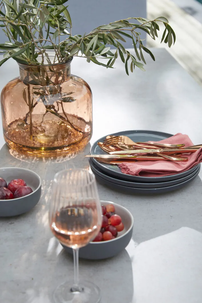 Der Teller im 4er Set hat eine kreisrunde Form und begeistert mit einem minimalistischen Look. Die Unterseite ist in mattem Schwarz gehalten, während sie die Fläche des Tellers in einem glänzenden Grau zeigt. Dank dieser Farbgebungen passt der Teller in fast jede Einrichtung und zu nahezu jeder Tischdekoration. Außerdem kommt er sowohl für den Gebrauch im Alltag als auch für die festlich geschmückte Tafel infrage. Hinzu kommt, dass er sehr pflegeleicht ist. Er kann nach der Nutzung nämlich einfach in der Spülmaschine gereinigt werden.