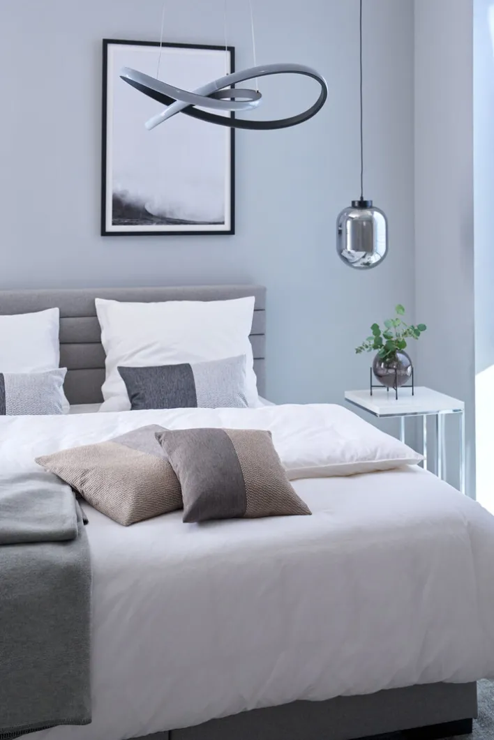 Die LED Pendellampe COURSE von RL ist in einer geschmackvollen Kombination aus Schwarz und Weiß designt. Da die Oberfläche matt gehalten ist, müssen Fingerabdrücke nicht mühevoll entfernt werden. Das zeitlose Modell passt in jeden Wohnraum, der nach einer schlanken Leuchte mit Raffinesse verlangt. Besonders gut zur Geltung kommt die stylische Lichtquelle als tiefhängende Lampe zentral über einem Treppenaufgang. Die einflammige, für den Wohnraum innen geeignete Pendelleuchte ist sicher an Seilen befestigt und taucht den Raum in ein szenisches Licht. Bei dem mitgelieferten Leuchtmittel handelt es sich um eine nicht austauschbare LED in 27 Watt. Mit einer Brenndauer von etwa 25.000 Stunden beträgt die maximale Lichtleistung 2.700 Lumen. Die CE-geprüfte Lampe erfüllt sämtliche Ansprüche an energieeffiziente Beleuchtung und ist eine Lichtquelle, die den Anforderungen an nachhaltiges Wohndesign gerecht wird. Dieser Artikel ist nur Online erhältlich!