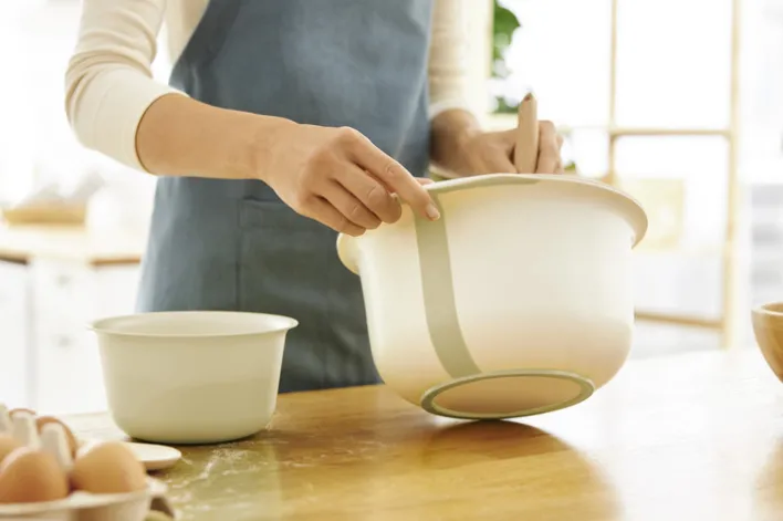 Das Rührschüssel-Set FRESH von rotho ist spülmaschinenfest und lebensmittelecht. Dadurch lässt es sich einfach reinigen und ist sicher in der Anwendung. Ein Antirutsch-Ring am Boden sorgt für einen sicheren Halt. Deckel und Spritzschutz-Ring verhindern ein Verschütten beim Mixen. Der ergonomisch geformte Griff ermöglicht ein komfortables Arbeiten. Das Schüssel-Set ist ein praktisches Küchenutensil, das vielseitige Einsatzmöglichkeiten bietet und durch seine durchdachte Ausstattung überzeugt.