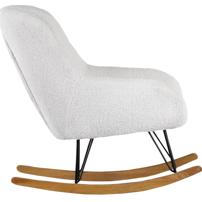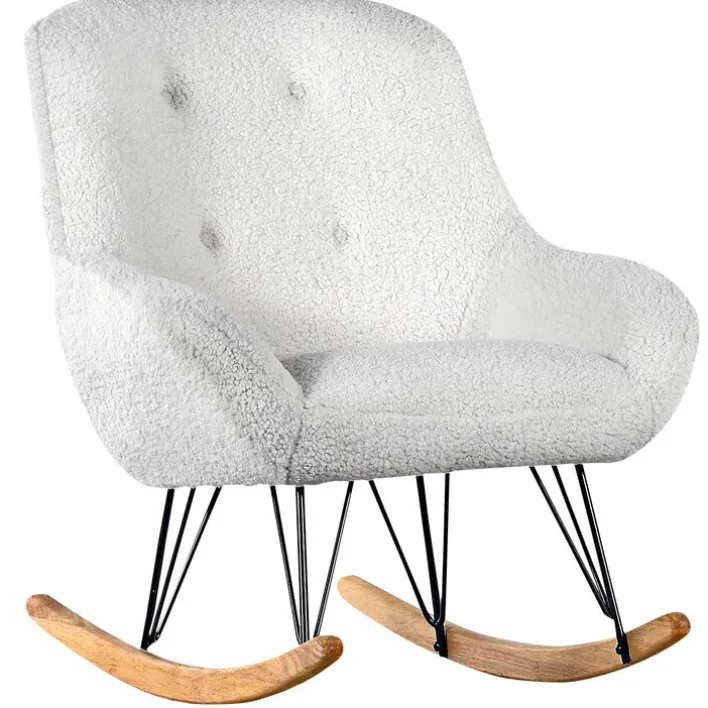 Der Schaukelsessel aus der Serie WOLLY vereint modernes Design mit hohem Komfort. Mit einer Breite von 75 cm, einer Höhe von 88 cm und einer Tiefe von 95 cm bietet er großzügigen Platz zum Entspannen. Der Sessel ist in einem eleganten Weiß gehalten, das sich harmonisch in verschiedene Wohnstile einfügt. Die Oberfläche aus weichem Textil, bestehend aus 100 % Polyester, sorgt für ein angenehmes Sitzgefühl. Die fest gepolsterten Armlehnen bieten zusätzlichen Komfort.