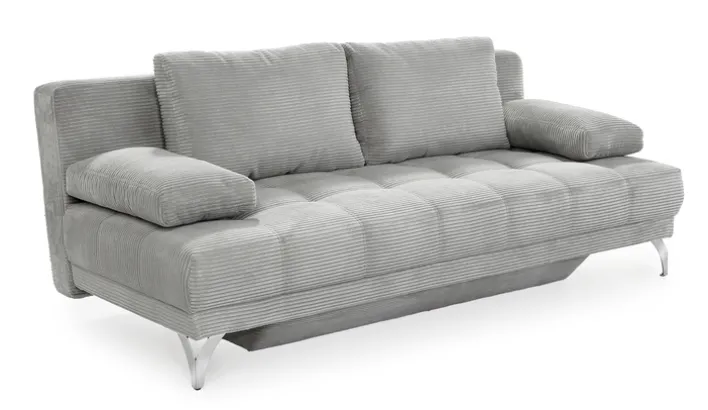 Das Schlafsofa LINUS bietet eine perfekte Kombination aus Funktionalität und modernem Design. Mit einer Breite von 203 cm und einer Tiefe von 101 cm bietet es großzügigen Platz zum Entspannen. Die Liegefläche in Sondermaß von 147 x 203 cm verwandelt das Sofa mühelos in ein komfortables Bett. Die Sitzhöhe von 45 cm sorgt für angenehmen Sitzkomfort. Der Bezug aus grauem Cord verleiht dem Sofa eine elegante und zugleich gemütliche Optik, die durch die chromfarbenen Metallfüße stilvoll ergänzt wird.