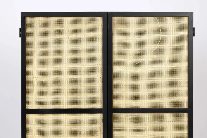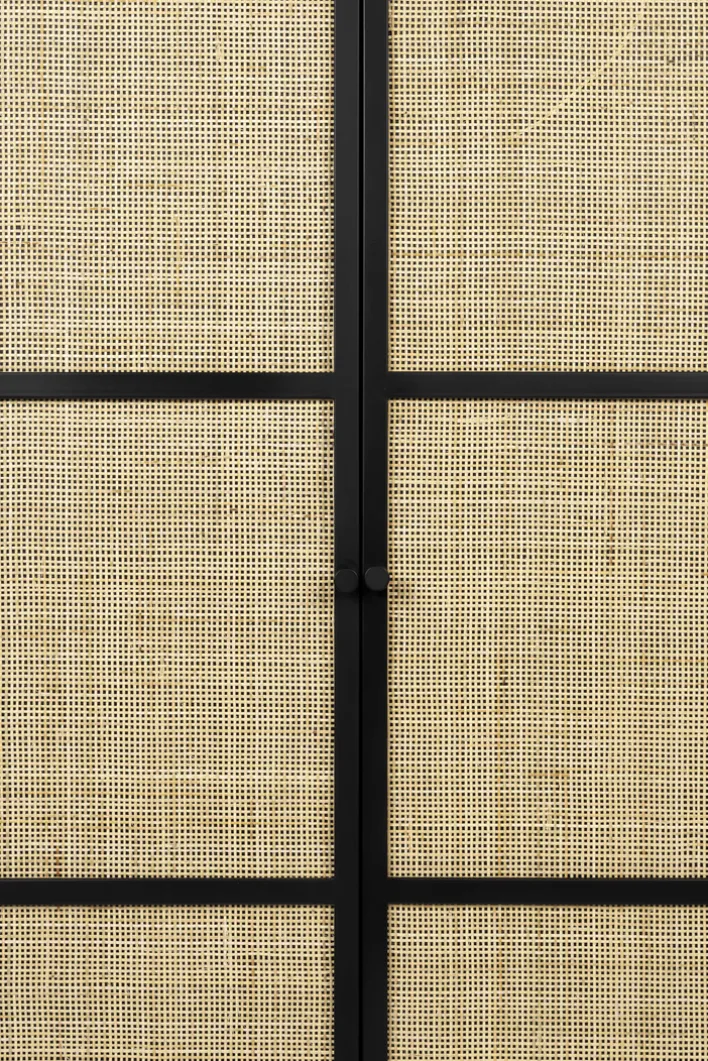 Jede Menge Stauraum bietet der 70 x 145 cm große Schrank JOANNA in Rattangeflecht/ Schwarz. Es besticht zudem auf den ersten Blick mit einem seinem modernen Skandi-Look, der Eleganz und Natürlichkeit ausstrahlt.