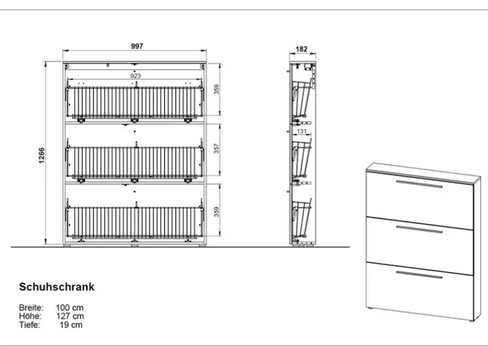 Breite: 100 cmHöhe: 129 cmTiefe/Ausladung: 19 cm