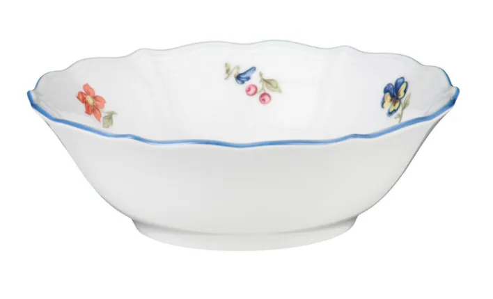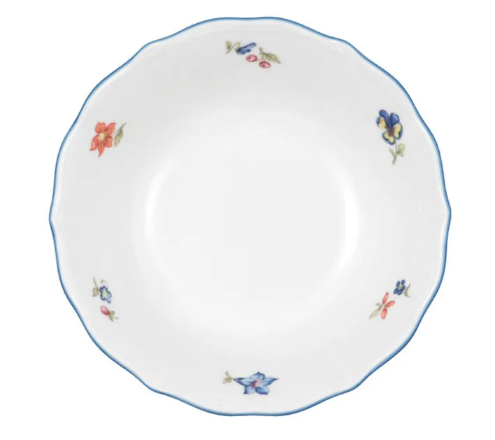 Diese kleine, nostalgische Dessertschale SONATE NOSTALGIE in der Farbe Weiß mit dem feinen, zarten Streublumendekor ist aus Porzellan gefertigt, hat einen Durchmesser von circa fünfzehn Zentimeter und ist ideal für Dessert, Kompott oder Salat geeignet. Das farbenfrohe Streublumendekor auf dem weißen Porzellan der Serie SONATE NOSTALGIE zeugt von moderner Landhaus Romantik. Mit der sommerlichen Frische von Streublumen und dem zarten, blauen Rand verzaubert die Porzellan Serie SONATE NOSTALGIE Sie und Ihre Gäste auf ganz besondere Weise. Dekorativ und alltagstauglich, das ist die Geschirr Serie SONATE NOSTALGIE, die Bereicherung für Ihr Zuhause.