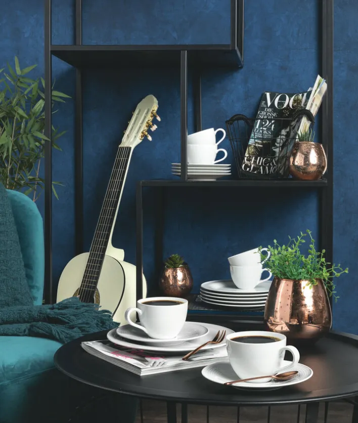 Das Service ist für sechs Personen ausgelegt und besteht aus sechs Kaffeetassen mit je 260 ml Volumen, sechs Untertassen mit einem Durchmesser von je 16,5 cm sowie sechs Frühstückstellern mit einem Durchmesser von je 23 cm. Ob morgens zum Frühstück oder am Nachmittag zu Kaffee und Kuchen – mit dem Kaffeeservice BEAT von Seltmann Weiden bringen Sie einen lebendigen und musikalischen Schwung auf Ihren Tisch. Die dezente Rillenstruktur erinnert an die guten, alten Vinylschallplatten und zaubert damit einen ganz eigenen Rhythmus auf Ihrer gedeckten Kaffeetafel. Das qualitätsvolle Geschirr ist spülmaschinenfest und mikrowellengeeignet.
