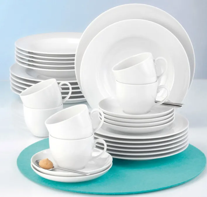 Setartikel: jaAnzahl Teile im Set: 30 Stk.Setartikel-Inhalt 1: KaffeetassenAnzahl Setartikel-Inhalt 1: 6 Setartikel-Inhalt 2: UntertassenAnzahl Setartikel-Inhalt 2: 6 Setartikel-Inhalt 3: FrühstückstellerAnzahl Setartikel-Inhalt 3: 6 Setartikel-Inhalt 4: Teller, flachAnzahl Setartikel-Inhalt 4: 6 Setartikel-Inhalt 5: Teller, tiefAnzahl Setartikel-Inhalt 5: 6 Durchmesser Setartikel 2: 15 cmDurchmesser Setartikel 3: 20 cmDurchmesser Setartikel 4: 25 cmDurchmesser Setartikel 5: 23 cmVolumen/Fassungsvermögen Setartikel 1: 210 ml