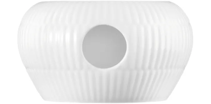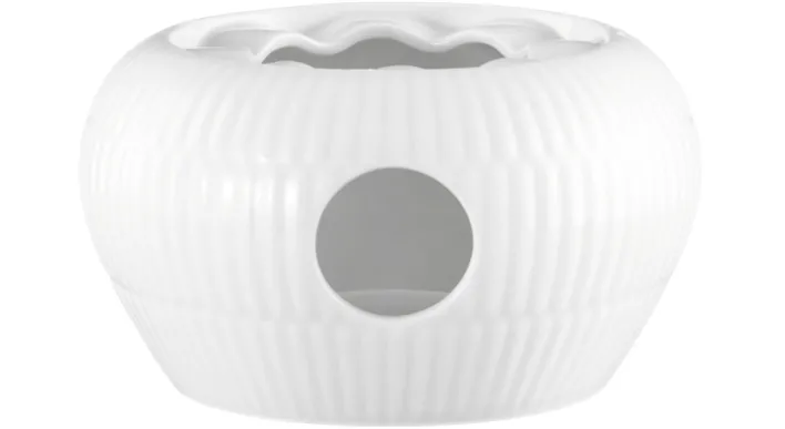 Sein ansprechendes Rillenrelief sorgt für etwas Bewegung im Weiß. Zudem ist die Oberfläche gewellt. Das Stövchen wird dem Landhausstil zugerechnet, es ist aber so neutral gearbeitet, dass es in jedem Haushalt stehen und zu jedem Geschirr verwendet werden kann. Es wird bei Gebrauch üblicherweise mit einem Teelicht versorgt (nicht im Lieferumfang enthalten) und hält Porzellan- oder Glaskannen lange Zeit warm.