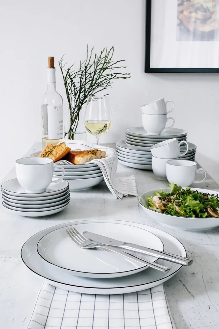 Das aparte Design ermöglicht den ganzjährigen Einsatz, unabhängig von Festtagen oder Jahreszeiten. Wie von der Lido Serie aus dem Hause Seltmann Weiden gewohnt, löst ein dezenter schwarzer Streifen das reine Weiß des Suppentellers ab. Die hochwertige und vorausschauende Verarbeitung ermöglicht die komfortable Reinigung in der Spülmaschine. Der Teller Lido kann zudem in der Mikrowelle oder im Ofen aufgewärmt werden. In Ihrem porta! Online Shop finden Sie passend zur eleganten Lido Serie von Seltmann Weiden ergänzende Porzellan Waren. Komplettieren Sie Ihren neuen Suppenteller Lido mit einer Sauciere, einem Teller für Frühstück oder einer Schale für Salat. #porta #portamöbel #glamitup