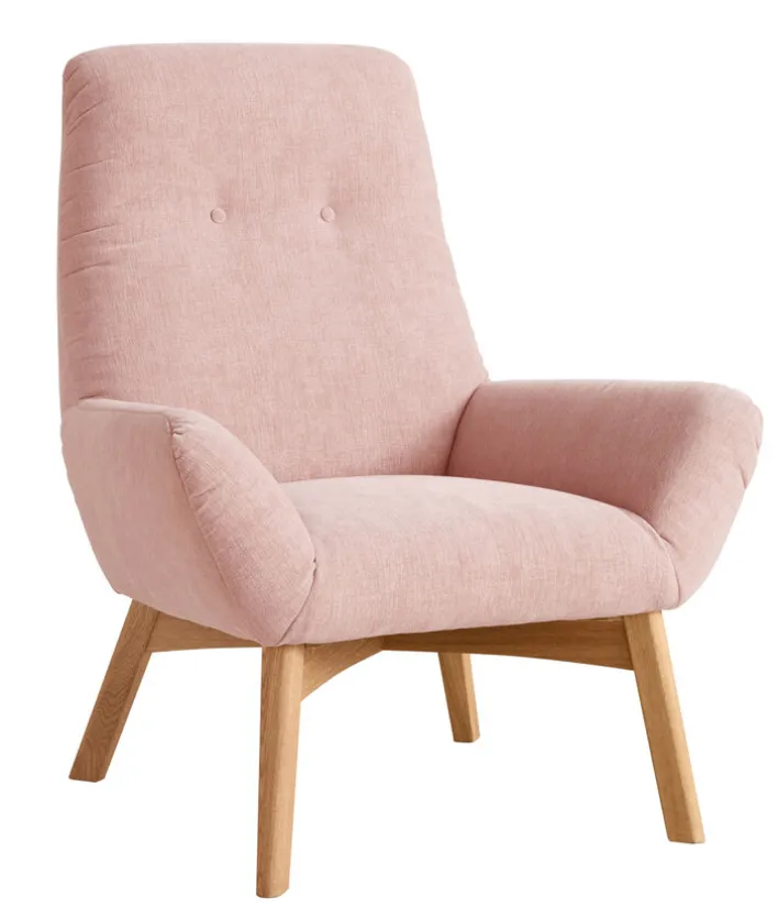 Der Sessel ist mit einem festen Armteil ausgestattet, das zusätzlichen Komfort bietet. Der Bezug aus Textil in einem zarten Rosaton sorgt für eine angenehme Haptik und fügt sich nahtlos in verschiedene Wohnstile ein. Die Kombination aus robustem Holz und weichem Stoff macht den Loungesessel zu einem langlebigen Begleiter in Ihrem Zuhause. Ideal für entspannte Stunden, fügt sich dieses Möbelstück sowohl in moderne als auch in klassische Einrichtungen ein.