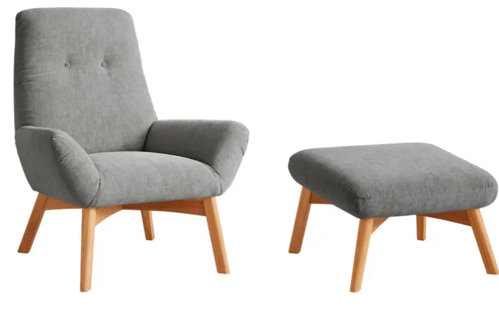 Der dazugehörige Hocker ergänzt den Sessel perfekt und bietet mit einer Breite von 82 cm, einer Tiefe von 65 cm und einer Höhe von 45 cm eine bequeme Ablage für die Füße. Die harmonische Farbgebung in Grau und Braun unterstreicht das zeitlose Design, das sich nahtlos in verschiedene Wohnstile einfügt. Dieses Set aus Sessel und Hocker ist ideal für alle, die Wert auf Qualität und Ästhetik legen.