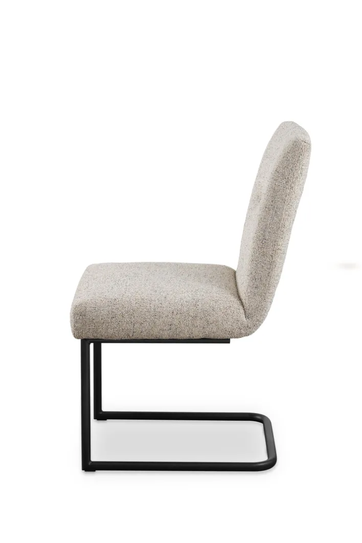 Das Gestell des Stuhls besteht aus pulverbeschichtetem Metall in Schwarz und verleiht dem Möbelstück eine stabile und moderne Optik. Die Schwinggestellart ermöglicht eine leichte Federung, die den Sitzkomfort zusätzlich erhöht. Mit einer maximalen Belastbarkeit von 140 kg ist der Stuhl robust und langlebig. Die Kombination aus Textil und Metall unterstreicht den modernen Stil und macht den Stuhl zu einem vielseitigen Möbelstück für jedes Esszimmer.