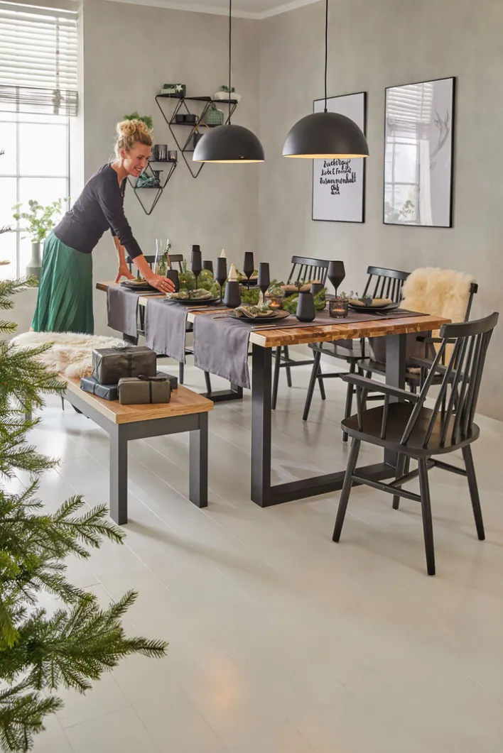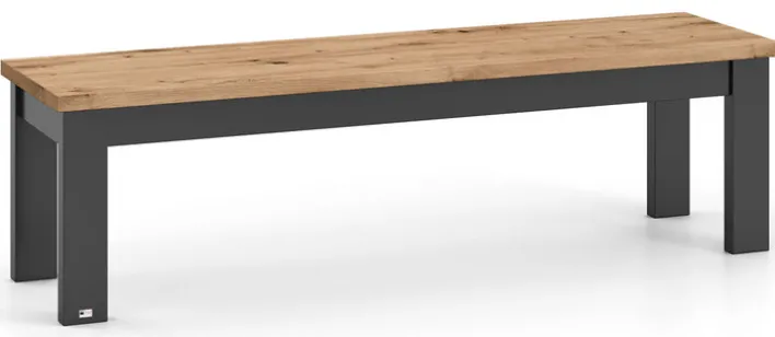 Die set one by Musterring Sitzbank YORK 61 besitzt ein Gestell in Anthrazit und eine Tischplatte in Eiche Artisan. Breite und Höhe messen 160 x 45 cm.