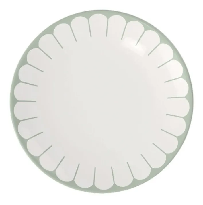 Der Speiseteller aus der Serie FLEUR VERT besticht durch sein elegantes Design und seine hochwertige Verarbeitung. Mit einem Durchmesser von 26,6 cm und einer Höhe von 2,6 cm bietet er ausreichend Platz für vielfältige Gerichte. Der Teller ist aus feinem Porzellan gefertigt, was ihm eine edle Optik und hohe Beständigkeit verleiht. Die Hauptfarbe Grün wird durch ein ansprechendes weißes Muster ergänzt, das an Blütenblätter erinnert und dem Teller eine frische, natürliche Ausstrahlung verleiht.