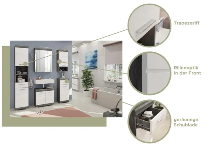 Was den Spiegel auszeichnet, ist sein denkbar einfaches Design. An ihm findet sich kein unnötiger Schnörkel. Daher ist es besonders für Badezimmer eine gute Wahl, in denen moderne Optiken hoch im Kurs stehen. Ob Zahnpaste oder Deodorant: Dank der dunkelgrauen Ablage aus Holzwerkstoff stehen wichtige Hygieneartikel immer in Reichweite. Lust auf mehr?