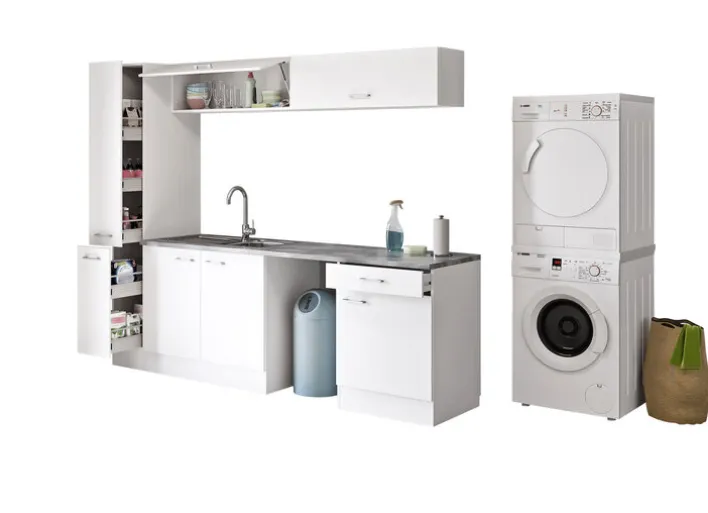 Der weiße Spülenunterschrank PETE mit Edelstahl-Einbauspüle besticht auf den ersten Blick durch sein schlichtes, modernes Design, das die Küche elegant und freundlich wirken lässt. Gleichzeitig bietet er wertvollen Stauraum.