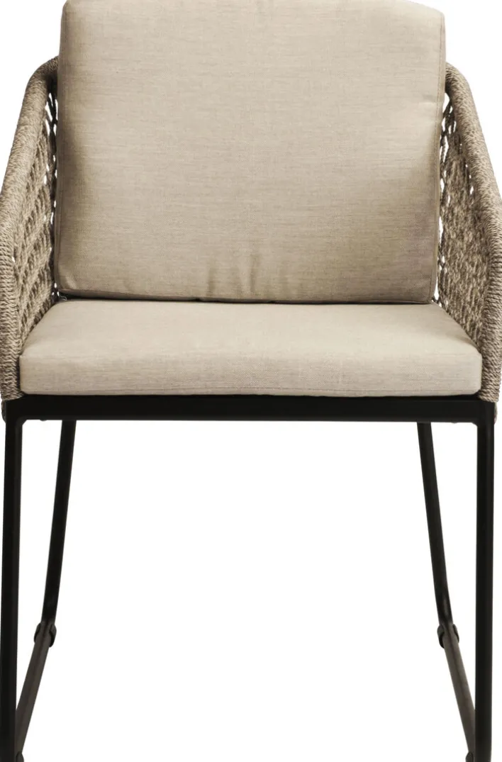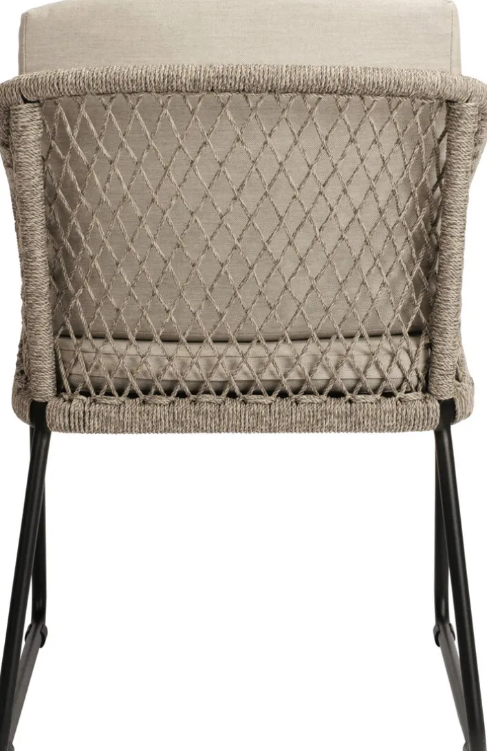 Der STERN Dining Gartenstuhl ODEA besteht aus einem robusten Kufengestell aus Metall in Matt Schwarz und einer Rückenlehne in beiger Geflecht Optik. Durch das Geflecht aus Polypropylen ist der Dining Stuhl strapazierfähig und hält Sonne, Wind und Wetter stand. Ausgestattet mit einem losen Sitz- und Rückenpolster mit Synthetikbezug bietet der Gartenstuhl zudem einen angenehmen Sitzkomfort – auch dann, wenn die gemeinsame Mahlzeit etwas länger dauert. Der elegante Dining Sessel bietet die perfekte Speisehöhe und kann mit einem Maximalgewicht von 120 kg belastet werden.