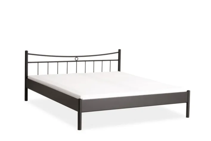 Das TRAUMWERKSTATT Metallbettgestell SVENJA besteht aus schwarzem Metall und hat ein erhöhtes Kopfteil mit romantischen Verzierungen. Durch das wunderschöne Kopfteil zieht das Bettgestell alle Blicke auf sich. Neben dem stilvollen Design überzeugt das 39,5 cm hohe Metallbettgestell mit einem angenehmen Einstieg. Ganz in Schwarz verleiht das Bettgestell dem Schlafzimmer ein gemütliches Wohlfühlambiente mit romantischem Flair. Geeignet ist das Metallgestell für Matratzen und Lattenroste in der Größe 140 x 200 cm.