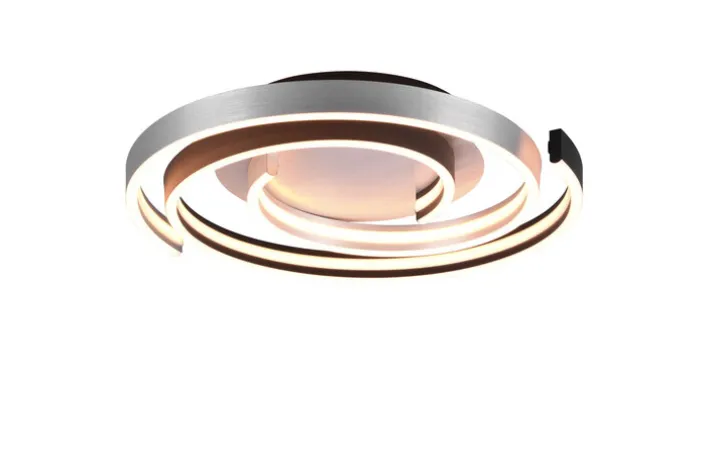 Die alufarbige LED-Deckenlampe CAYA des Herstellers TRIO mit einem Durchmesser von 50 cm vermag sowohl optisch als auch praktisch zu überzeugen.