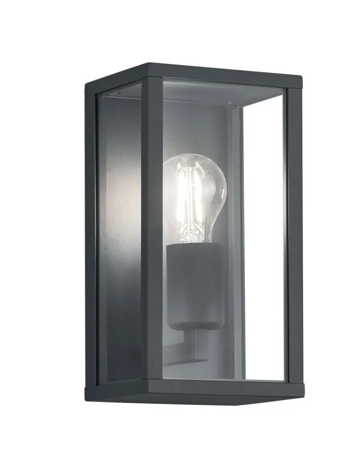 Diese Außenwandlampe aus Druckgussaluminium mit einer Breite von 14 cm und einer Höhe von 26 cm überzeugt einerseits durch ihr Design, das sie zu einem echten Hingucker an jeder Außenwand beziehungsweise in jedem Feuchtraum macht. Andererseits punktet sie durch die Schutzart IP44, wodurch sie vor Spritzwasser und Fremdkörpern von über 1 mm geschützt ist. Diese Lampe leuchtet ihre Umgebung ideal aus. Ein wechselbares Leuchtmittel des Typs AGL und Retrofit mit einer E-27-Fassung ist separat erhältlich. Der Energieverbrauch beträgt 60 Watt.
