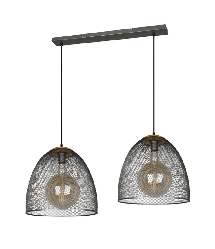Die 2-flammige Retrofit Pendellampe IVAR von TRIO überzeugt mit ihrem stilsicheren Design und passt in modern eingerichtete Wohnbereiche. Auch für Räumlichkeiten im Vintage- oder Industry-Stil ist die Lampe ist sie geeignet. Sie beleuchtet den Esstisch im Wohn- oder Esszimmer und ist auch für den Thekenbereich in einer Küche ideal. Durch die schönen Lampenschirme in Gitteroptik fällt die Pendellampe sofort ins Auge. Gleichzeitig sorgt sie für ein angenehmes Licht mit Reflexionen.