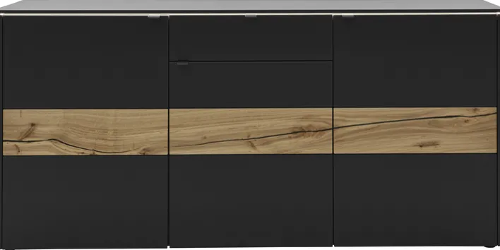 Das eleganten VENJAKOB Sideboard GAME mit den Maßen 186 x 89 präsentiert sich in Lack anthrazit und hochwertigen Absetzungen aus Balkeneiche. Es ist eine ideale Lösung, um stets Ordnung zu halten.