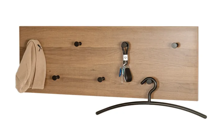 Minimalistisch, trendig, einfach schön: Diese praktische Wandgarderobe findet selbst auf kleinstem Raum noch ihren Platz, sie lässt sich leicht in jeder gewünschten Höhe anbringen. Durch ihr Design passt sie sich der vorhandenen Einrichtung an. Die 7 Haken bieten Platz für Kleiderbügel, Taschen und Mützen. Zusammen mit Garderobenschränken, Spiegeln und weiteren Ablagemöbeln wird aus der Wandgarderobe im Handumdrehen ein Ensemble, das rundum alltagstauglich ist. Die Lieferung erfolgt zerlegt. Bitte Montageanleitung und Pflegehinweise am Artikel beachten.