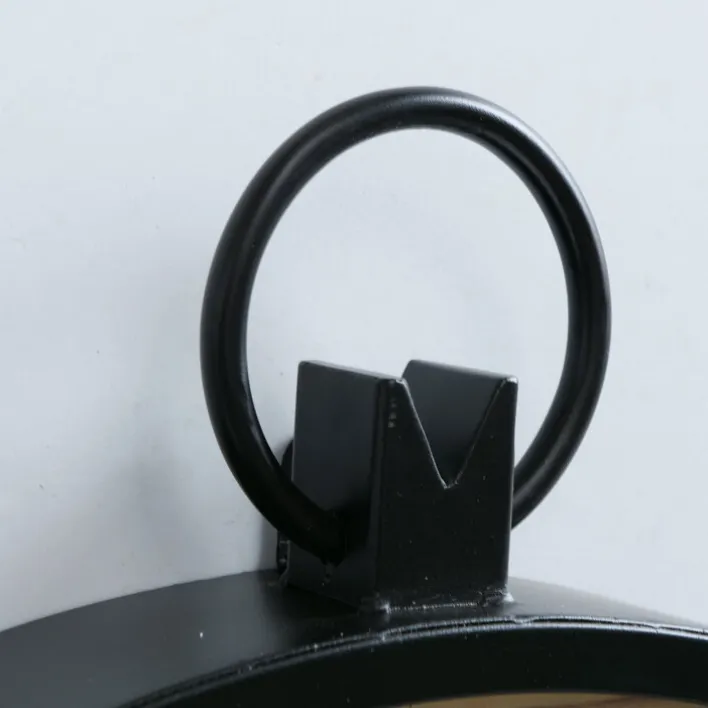 Die Wanduhr MATERA hat einen Durchmesser von 50 cm. Ihr Zifferblatt aus braunem Holz wurde in ein schwarzes Metallgehäuse gefasst. Sie besticht durch ihr zeitloses Design im Vintage Stil.