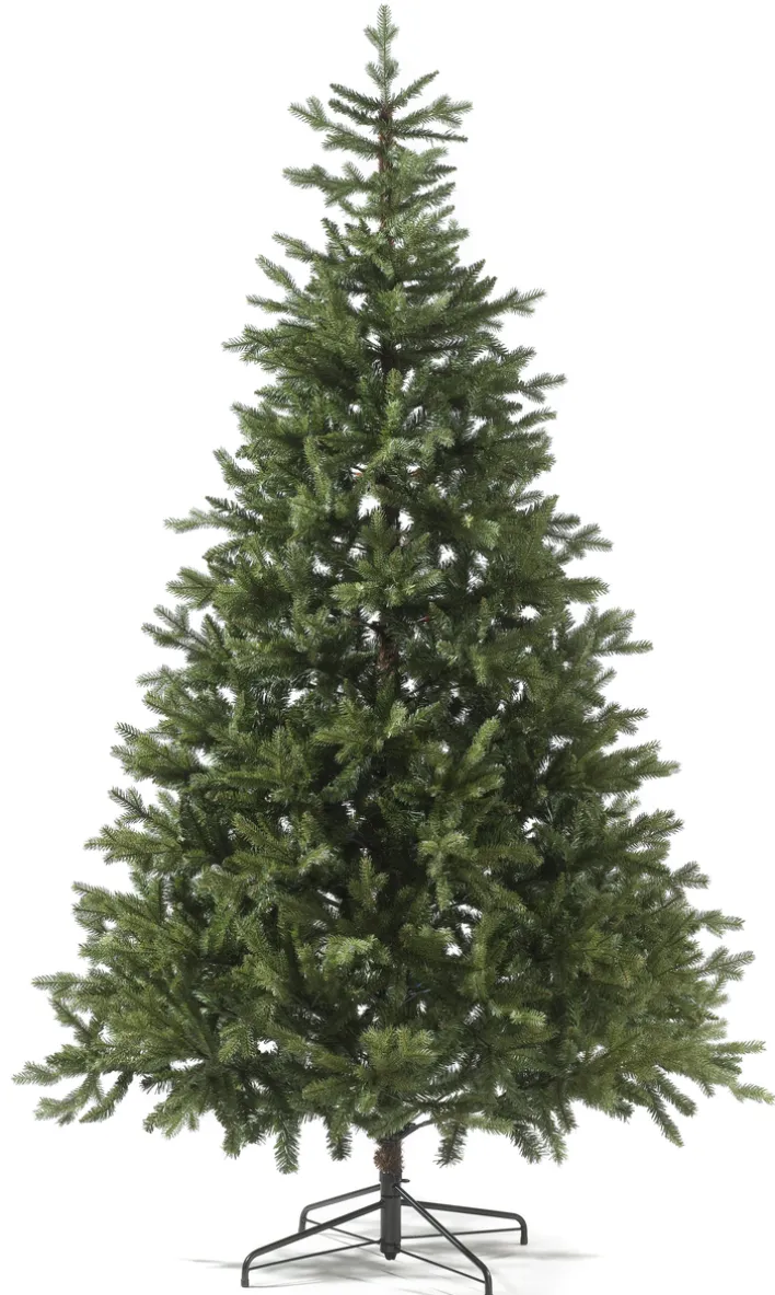 Dieser künstliche Weihnachtsbaum ist 240 cm hoch, 152 cm breit und 152 cm tief.