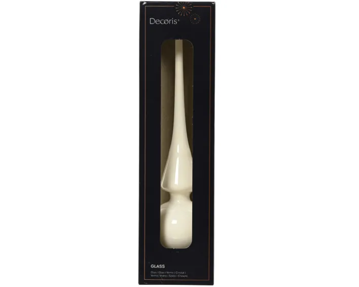 Die in der warmen Farbe Wollweiß designte Baumspitze aus Glas Emaille 113159 ist ideal für das Dekorieren der Spitze eines Tannenbaums zur Weihnachtszeit geeignet. Das Modell hat einen maximalen Durchmesser von sechs Zentimetern und eine Höhe von 26 Zentimetern.
