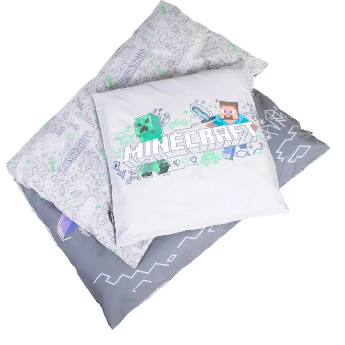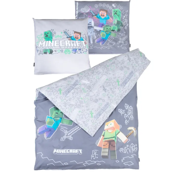 Mit zwei unterschiedlichen Designs lässt sich die Bettwäsche je nach Stimmung oder Vorliebe wenden. Eine Seite zeigt lebendige Motive aus der Minecraft-Welt, während die andere Seite das ikonische Minecraft-Logo in einem minimalistischen Design präsentiert. So ist für Abwechslung und Individualität im Schlafzimmer gesorgt. Diese Bettwäsche ist nicht nur funktional, sondern auch ein echter Hingucker im Kinderzimmer. Sie eignet sich hervorragend als Geschenk für Minecraft-Fans und schafft eine persönliche Wohlfühloase im Raum.