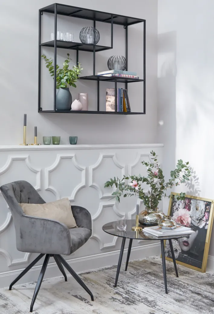 Der Kerzenhalter mit dem außergewöhnlichen Erscheinungsbild ist aus hochwertigem Metall. Die gebogenen Stäbe und der stabile Boden sind in der Farbe schwarz lackiert. Im Innern des Kerzenhalters ist ein Zylinder aus klarem Glas, der das Teelicht vor Zugluft schützt. Das schöne Windlicht bietet Platz für ein handelsübliches Teelicht. #porta #portamöbel #meinporta #olivegreen #naturtyp #warmhome #coffeeculture #scandihome #multifunctional
