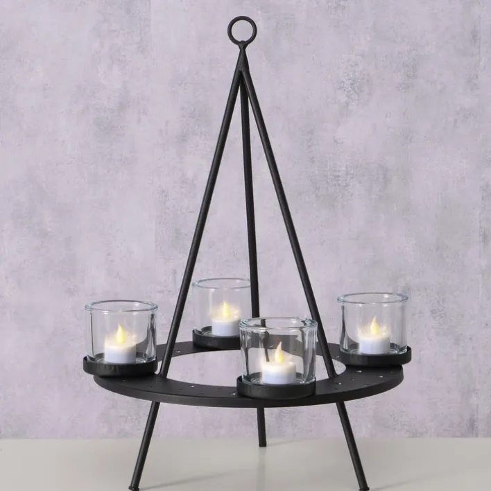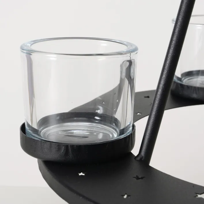 Das schwarze Windlicht STARRY, gefertigt aus pulverbeschichtetem Metall, besticht durch seine imposante Höhe von 57 cm. Mit filigranen, sternförmig angeorsneten Kerzenlichtern taucht es jeden Raum in eine festliche, nahezu magische Atmosphäre. Der integrierte Kerzenhalter bietet Platz für Teelichter oder Stumpenkerzen, wodurch eine vielseitige Nutzung gewährleistet wird.
