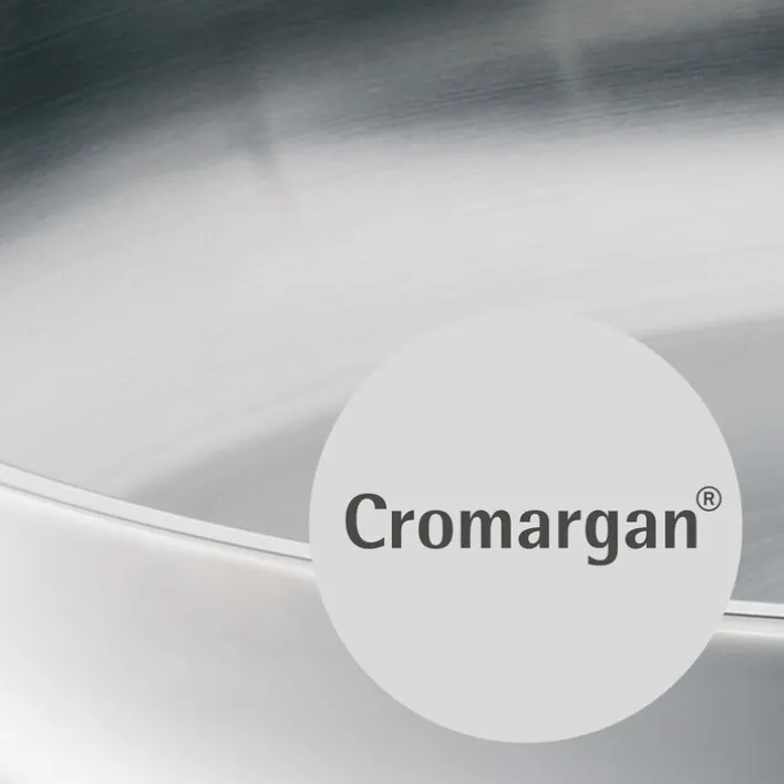 Die klassische Pfanne ganz aus Cromargan®. Hochwertiger Edelstahl hat sich beim Kochen und Braten bewährt. Das Material ist strapazierfähig, geschmacksneutral und beständig gegen Speisesäuren. Es verträgt starke Hitze, ist unempfindlich gegen Kratzer und Stöße und kann in der Spülmaschine gereinigt werden. Auch bei intensivem Gebrauch sieht Edelstahl nach Jahren noch gut aus. Die Pfanne Profi hat einen TransTherm®-Allherdboden für alle Herdarten. Diese Pfanne macht ihrem Namen alle Ehren. Sie ist äußerst robust und unverwüstlich im Gebrauch. Sie verträgt höchste Belastungen wie extreme Hitze oder den Temperaturschock beim Ablöschen. Perfekt zum schnellen und scharfen Anbraten bei hohen Temperaturen. Die Pfanne Profi gibt es als Stielpfanne oder als Servierpfanne mit seitlichen Griffen zum Servieren und zum Gratinieren im Backofen. Induktionsgeeignet.