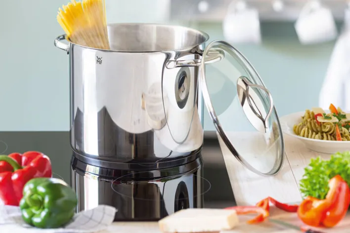 Mit diesem Gemüsetopf aus hochwertigem Edelstahl von WMF lassen sich verschiedene Gemüsesorten und andere Gerichte leicht garen. Er ist für alle Herdarten geeignet und zeichnet sich durch eine Premium-Qualität „Made in Germany“ aus.