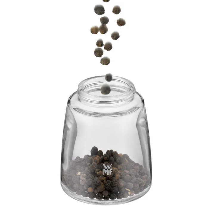 Gewürze schmecken besonders intensiv, wenn sie frisch gemahlen werden. Verantwortlich dafür sind die ätherischen Öle, die beim Mahlen freigesetzt werden. WMF Gewürzmühlen CERAMILL® vereinen Funktionalität und Ästhetik. WMF Mühlen sind mit dem original Keramikmahlwerk Ceramill ausgestattet. Keramik ist härter als Stahl, abrieb- und korrosionsfrei. Die Mahlstärke lässt sich bei den Mühlen stufenlos einstellen von ganz fein bis grob. Das Einstellrad im inneren ermöglicht die stufenlose Einstellung der Mahlstärke. Der Aromadeckel sitzt fest auf der Gewürzmühle, schützt somit das Mahlwerk und bewahrt das Gewürzaroma. Durch ihr anspruchsvolles Design machen die Mühlen auch auf dem gedeckten Tisch einen guten Eindruck.