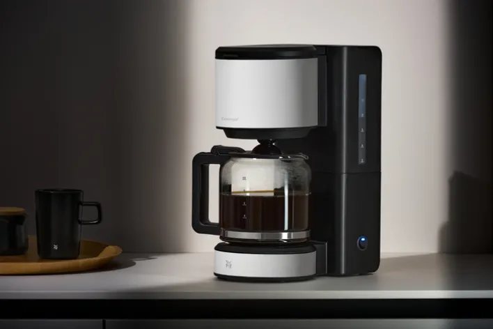 Mit kompakten Abmessungen von 18,5 cm Länge, 31,5 cm Breite und 36 cm Höhe passt das Gerät gut auf Küchenarbeitsplatten. Das Fassungsvermögen der Glaskanne beträgt 1.250 ml. Die maximale Leistung liegt bei 1.000 Watt, der Anschluss erfolgt über einen Netzstecker. Die Hauptfarbe ist Silberfarbig in Kombination mit Schwarz, ergänzt durch klare Glaselemente und den Farbton Paper Grey. Das Gewicht beträgt 2,88 kg. Die Kaffeemaschine eignet sich für den Einsatz im Küchenbereich und stammt von der Marke WMF.