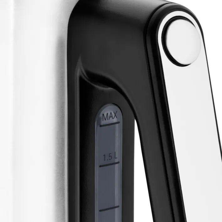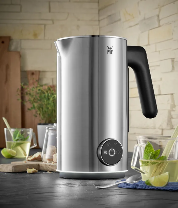Der silberfarbige WMF Wasserkocher LUMERO besteht aus rostfreiem Cromargan Edelstahl und hat ein Fassungsvermögen von 1,6 Liter. Dank der Verwendung von Edelstahl ist der Wasserkocher nicht nur hitze- und temperaturbeständig, sondern auch sehr pflegeleicht. Der herausnehmbare, abwaschbare Kalkwasser-Filter verhindert ein rasches Verkalken, während Überhitzungs- und Trockenlaufschutz sowie Kochstoppautomatik maximale Sicherheit garantieren. Dank Komfort-Einhanddeckelöffnung überzeugt der Wasserkocher zudem mit einer einfachen Handhabung. Die Temperatur lässt sich auch 70, 80, 90 und 100 Grad einstellen.