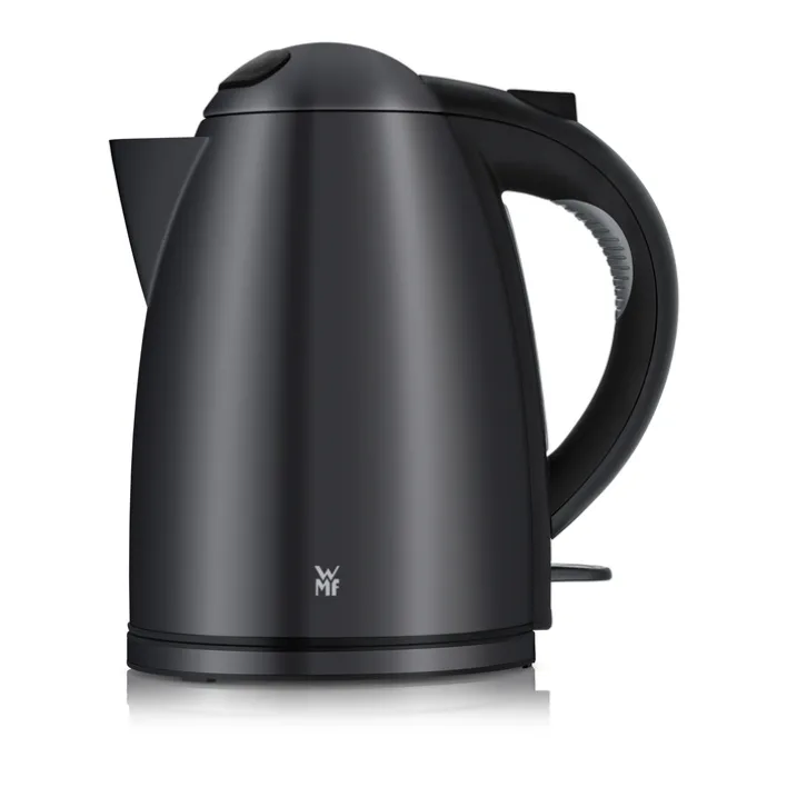 Der Wasserkocher STELIO BLACK von WMF überzeugt durch seine schlichte, moderne Gestaltung in tiefem Schwarz. Das Gehäuse besteht aus Metall mit glatter, matter Oberfläche, was dem Gerät ein zeitgemäßes und gleichzeitig zurückhaltendes Erscheinungsbild verleiht. Die kompakten Maße von 17 cm Länge, 22 cm Breite und 24,5 cm Höhe ermöglichen eine platzsparende Unterbringung in der Küche.
